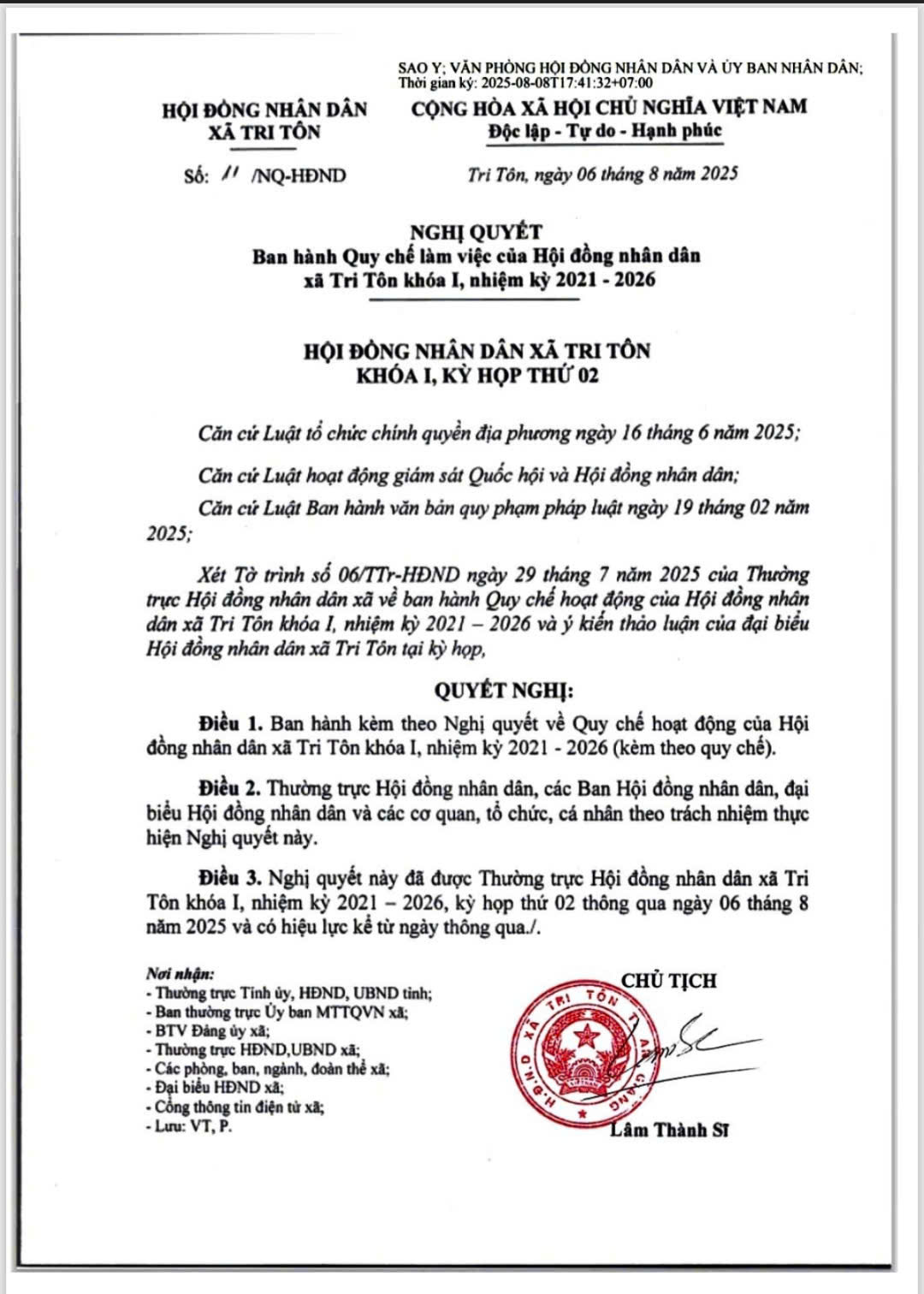 Nghị Quyết Ban hành Quy chế làm việc của HĐND xã Tri Tôn khóa I, nhiệm kỳ 2021-2026 08/08/2025 Read more