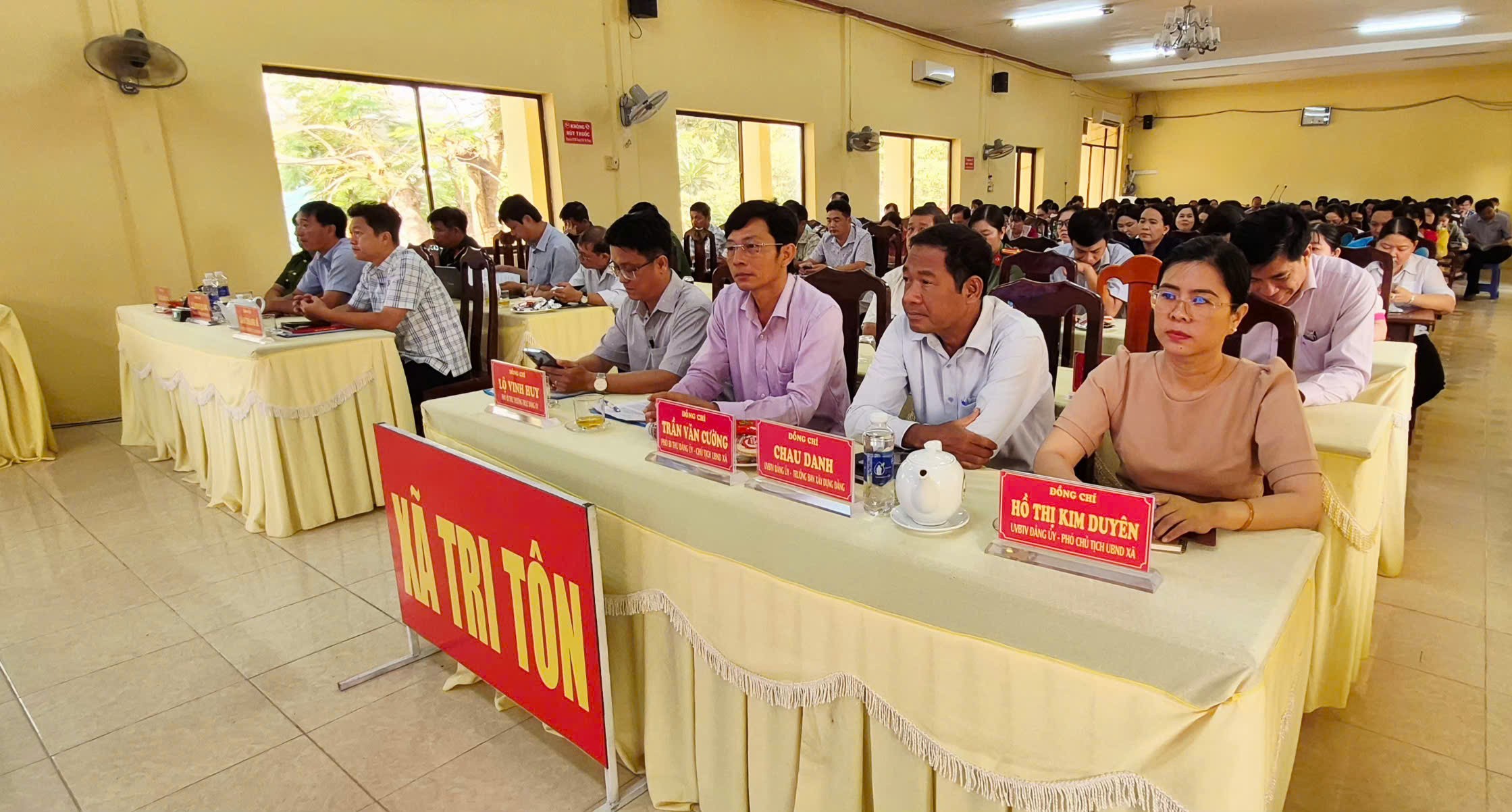 Tham dự tại điểm cầu xã Tri Tôn có đồng chí Lâm Thành Sĩ – Tỉnh ủy viên, Bí thư Đảng ủy, Chủ tịch HĐND xã; đồng chí Lộ Vinh Huy – Phó Bí thư Thường trực Đảng ủy xã; đồng chí Trần Văn Cường – Phó Bí thư Đảng ủy, Chủ tịch UBND xã; đồng chí Hồ Thị Kim Duyên – Ủy viên Ban Thường vụ Đảng ủy, Phó Chủ tịch UBND xã; đồng chí Lê Văn Dưỡng – Ủy viên Ban Thường vụ Đảng ủy, Phó Chủ tịch UBND xã; cùng các đồng chí Ủy viên Ban Thường vụ Đảng ủy, Ủy viên Ban Chấp hành Đảng bộ xã, Ủy viên Ủy ban Kiểm tra Đảng ủy; đại diện các phòng, ban, ngành, Mặt trận Tổ quốc và các tổ chức chính trị - xã hội; cán bộ, đảng viên của các cơ quan Đảng, chính quyền xã; các chi bộ, đảng bộ trực thuộc; đại diện các trường học, Trung tâm Y tế và Trạm Y tế xã Tri Tôn.