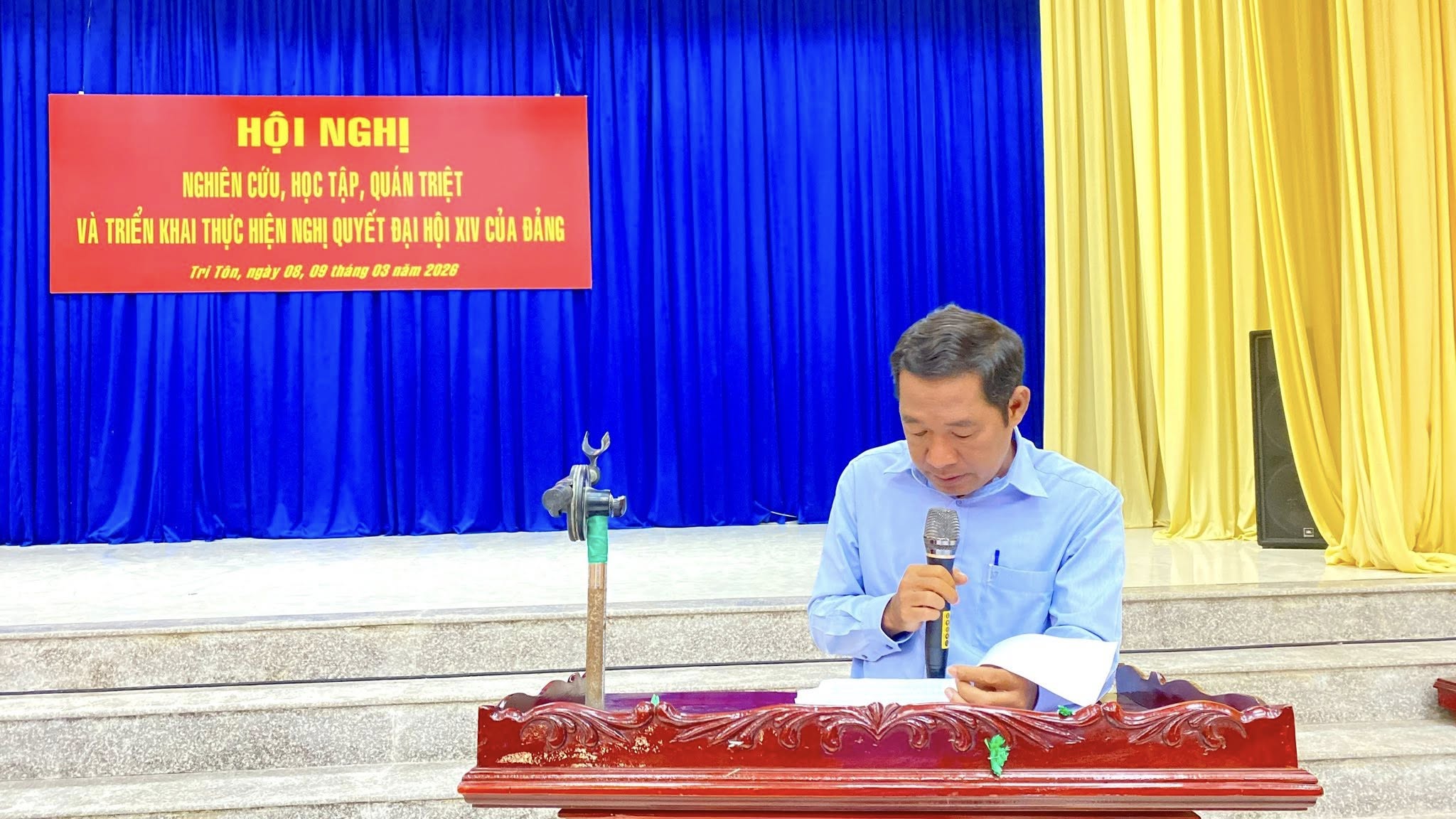 Sáng ngày 8/3/2026, Đảng ủy xã Tri Tôn tổ chức Hội nghị nghiên cứu, học tập, quán triệt và triển khai thực hiện Nghị quyết Đại hội XIV của Đảng cho gần 330 cán bộ, đảng viên thuộc ngành giáo dục trên địa bàn Tri Tôn.