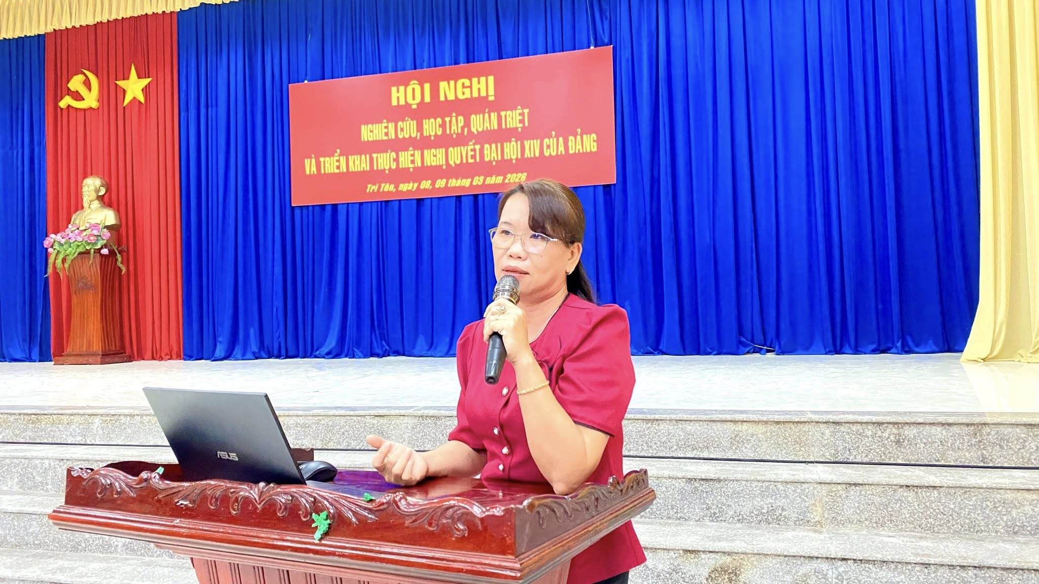 Tại hội nghị, các đại biểu được nghe đồng chí Chau Danh – Ủy viên Ban Thường vụ Đảng ủy, Trưởng Ban Xây dựng Đảng và đồng chí Nguyễn Thị Hương Sen – Giám đốc Trung tâm Chính trị xã Tri Tôn triển khai các nội dung chuyên đề quan trọng.
