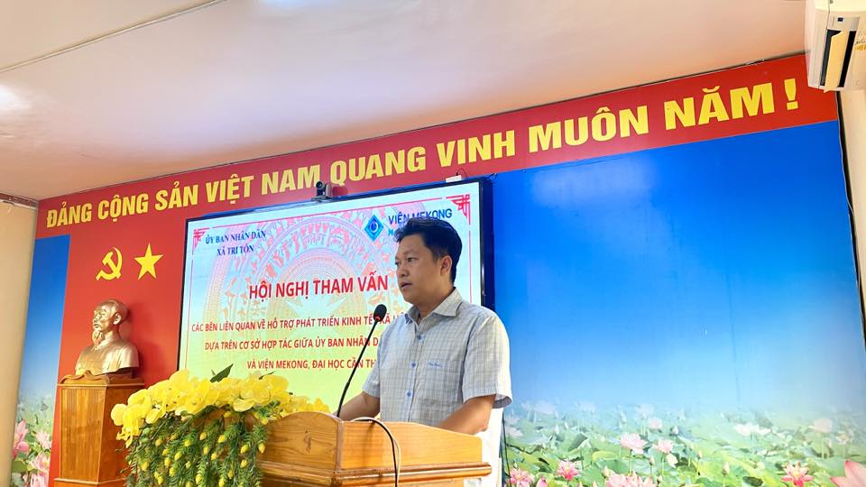 ​          Phát biểu kết luận hội nghị, Phó Giáo sư, Tiến sĩ Văn Phạm Đăng Trí nhấn mạnh vai trò của sự liên kết giữa địa phương và đơn vị nghiên cứu, đồng thời khẳng định Viện Mekong sẽ tiếp tục đồng hành, hỗ trợ xã Tri Tôn trong việc xây dựng các mô hình phát triển phù hợp, hướng đến nâng cao đời sống người dân và phát triển kinh tế - xã hội bền vững trong thời gian tới.