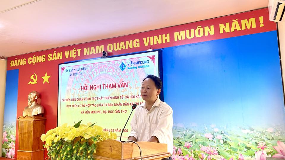 Chiều ngày 20/3/2026, tại hội trường UBND xã Tri Tôn, đã diễn ra Hội nghị tham vấn các bên liên quan về hỗ trợ phát triển kinh tế - xã hội, trên cơ sở hợp tác giữa UBND xã Tri Tôn và Viện Mekong – Đại học Cần Thơ.