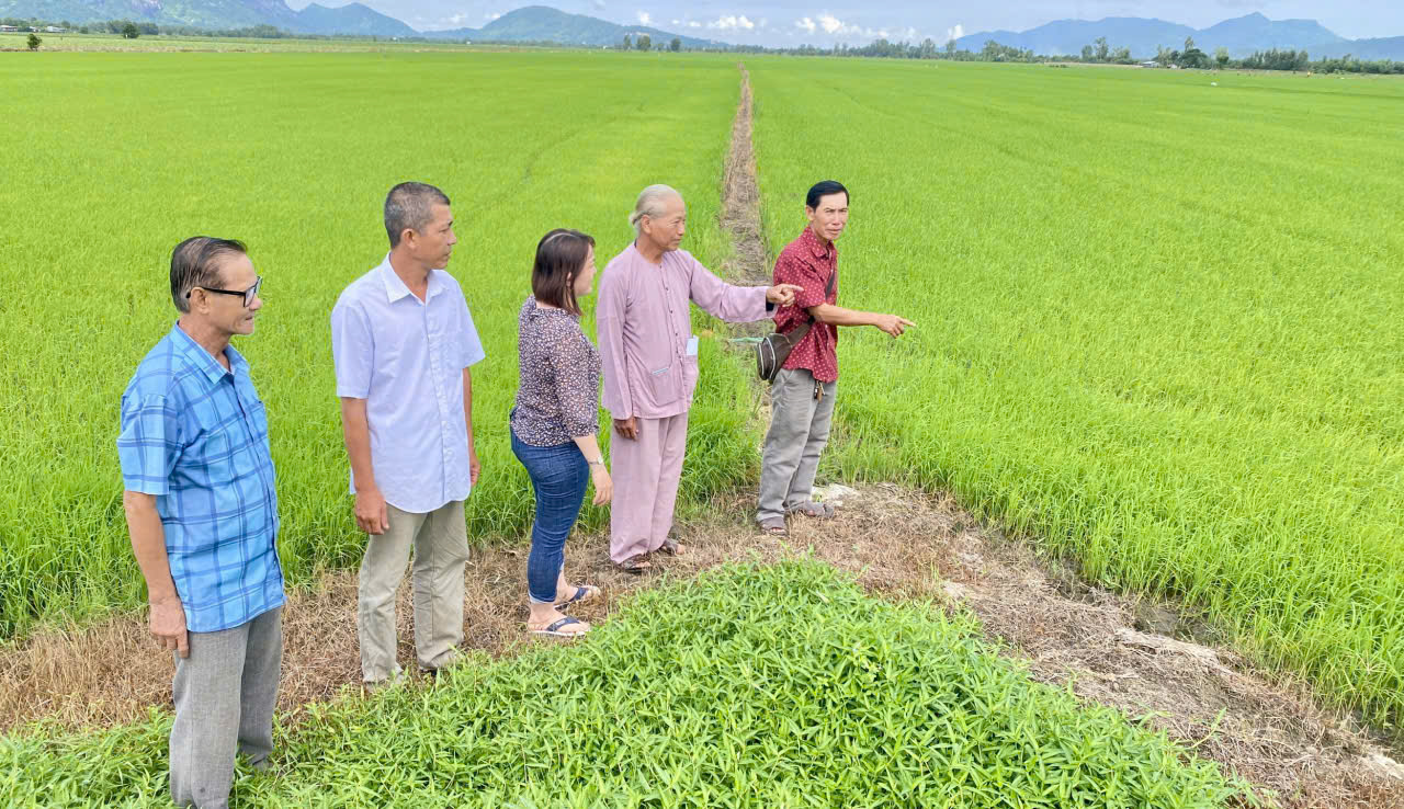 Đại hiện HTX Nông nghiệp Lộc Phát 1 cùng nông dân xuống thăm ruộng