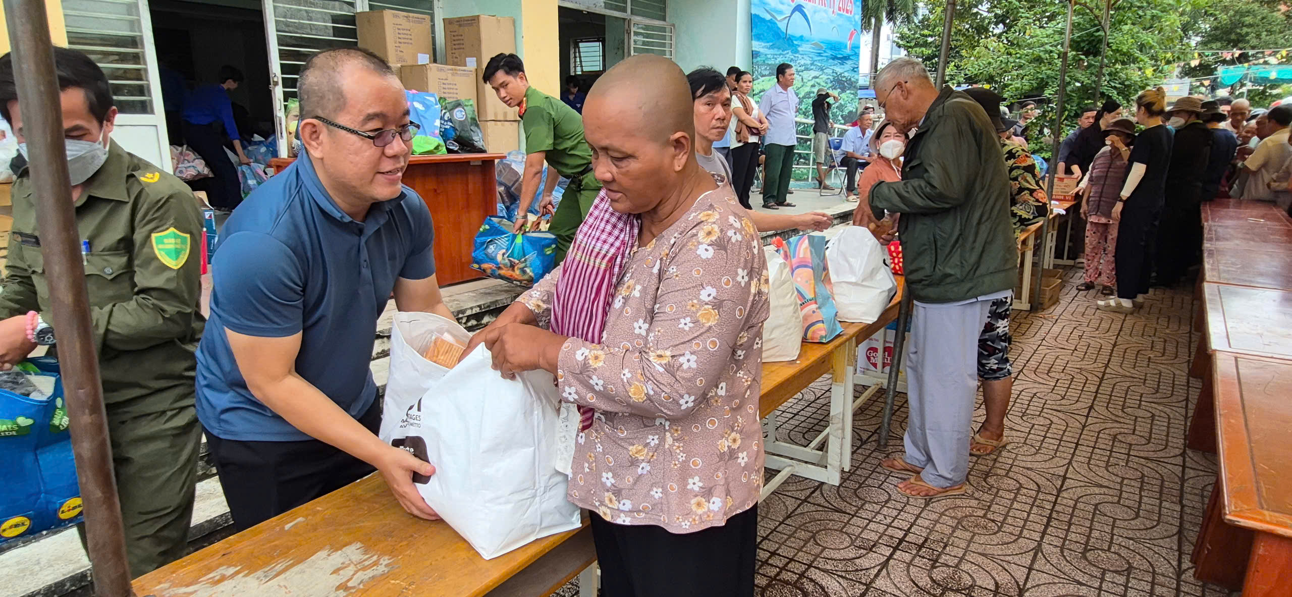 Tặng 986 phần quà cho bà con thuộc hộ nghèo, hộ cận nghèo, gia đình chính sách trên địa bàn xã Tri Tôn