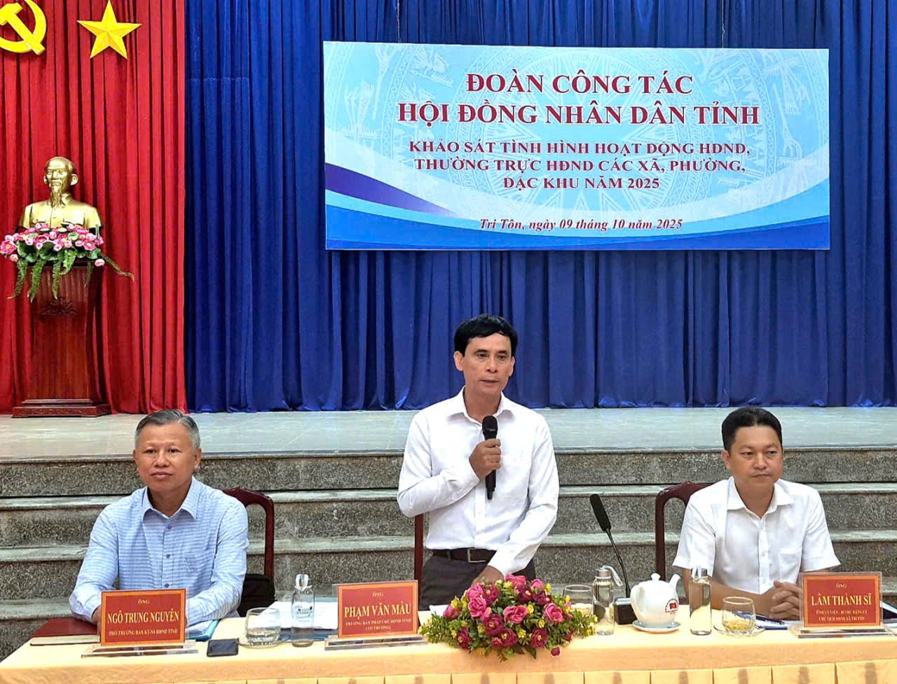 Sáng ngày 9/10, tại xã Tri Tôn, đoàn khảo sát của Hội đồng nhân dân tỉnh An Giang do ông Phạm Văn Màu – Trưởng Ban Pháp chế HĐND tỉnh làm trưởng đoàn– đã có buổi làm việc với HĐND 11 xã gồm: Tri Tôn, Ba chúc, Ô Lâm, Cô Tô, Chợ Vàm, Phú Lâm, Mỹ Đức, Vĩnh Thạnh Trung, Hòa Lạc, Phú Hòa và Định Thành .