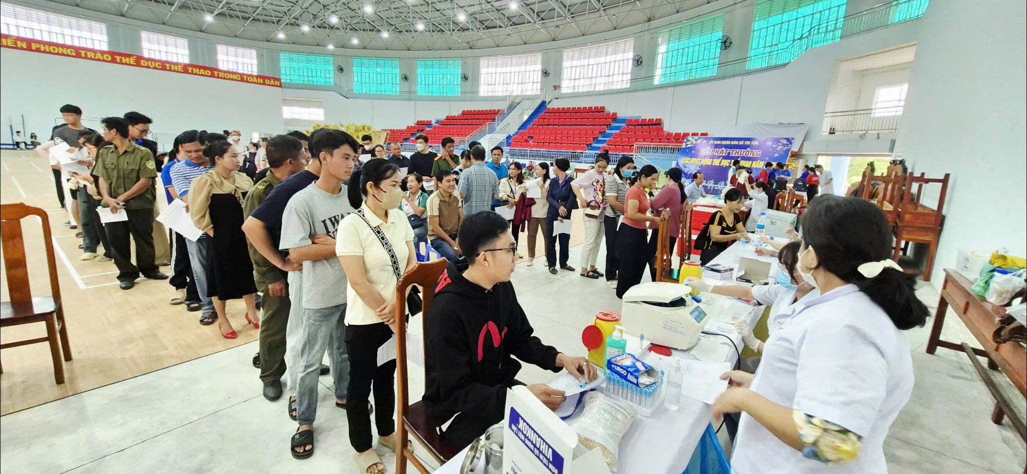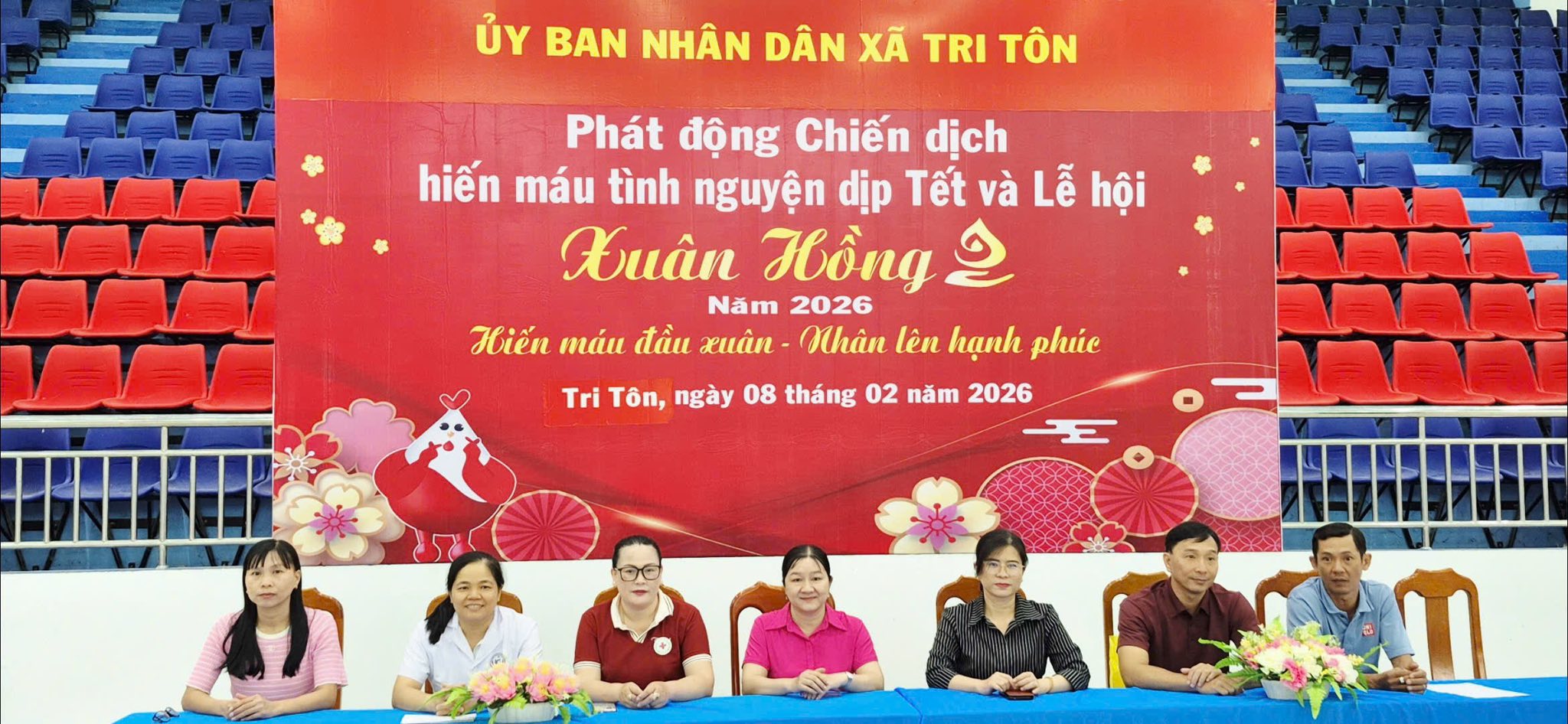 Sáng ngày 08/02/2026, Tại nhà thi đấu – Trung tâm Dịch vụ tổng hợp xã Tri Tôn. UBND xã Tri Tôn phối hợp cùng Hội chữ thập đỏ tỉnh An Giang, Khoa Huyết học bệnh viện đa khoa Kiên Giang tổ chức phát động chiến dịch hiến máu tình nguyện nhân dịp Tết và Lễ hội Xuân Hồng năm 2026 với chủ đề “ Hiến máu đầu xuân – nhân lên hạnh phúc ”. Tham dự có bà Đặng Thị Kim Chi – đại diện Hội chữ thập đỏ tỉnh An Giang; bà Hồ Thị Kim Duyên – UV.BTV – Phó Chủ tịch UBND xã Tri Tôn; ông Thái Quốc Bình – Phó Giám đốc Trung tâm Dịch vụ tổng hợp xã Tri Tôn cùng đội ngũ y, bác sĩ Khoa Huyết học bệnh viện đa khoa Kiên Giang tham dự.