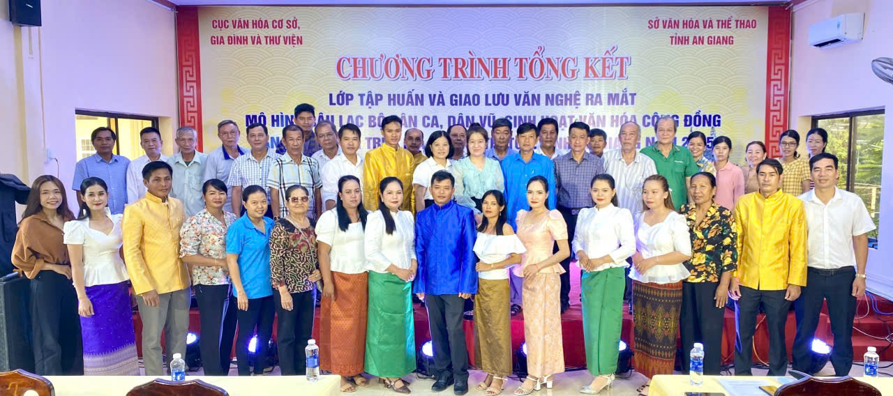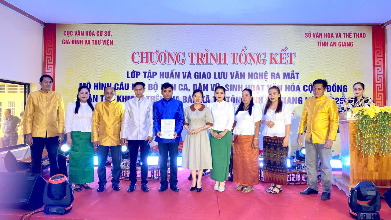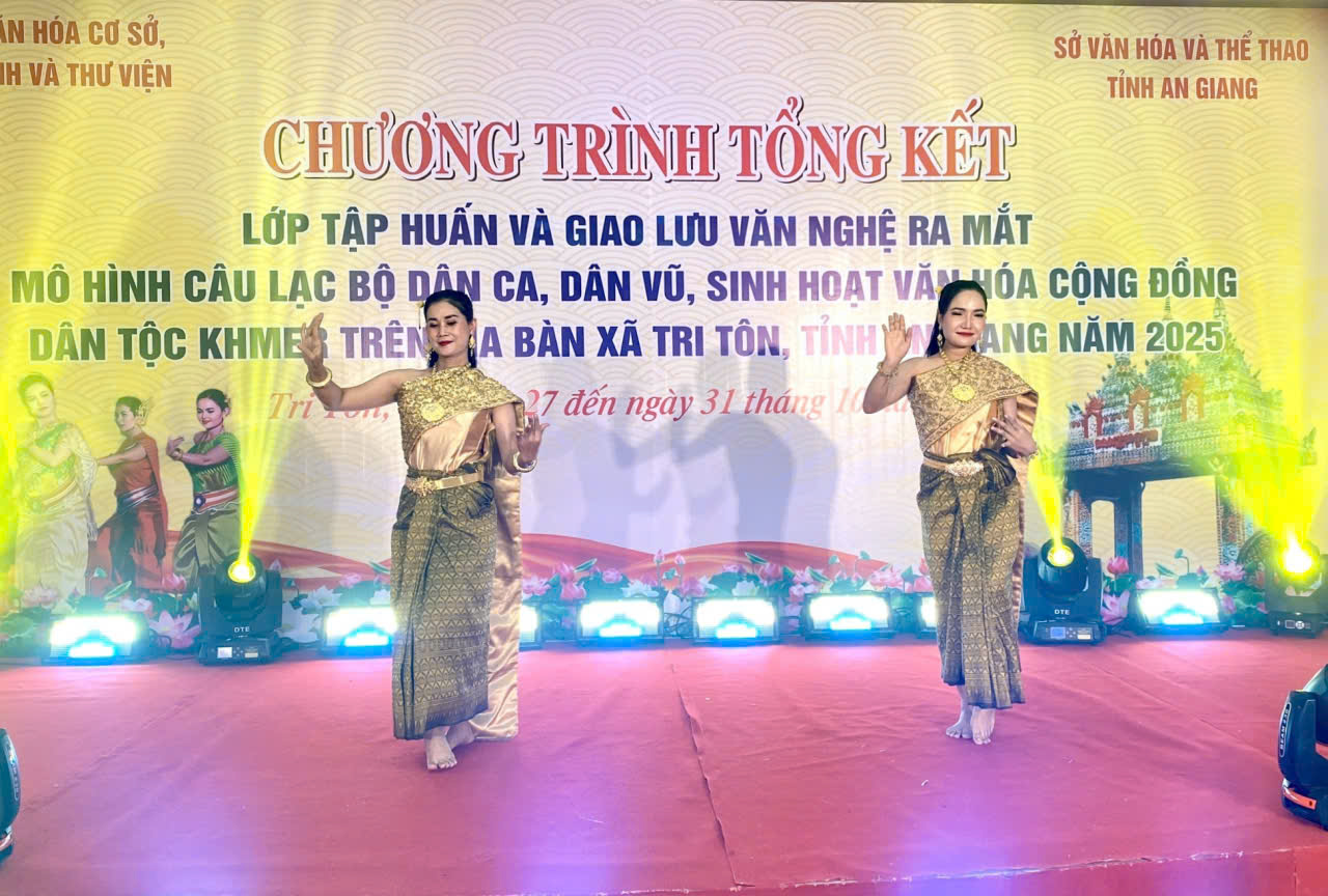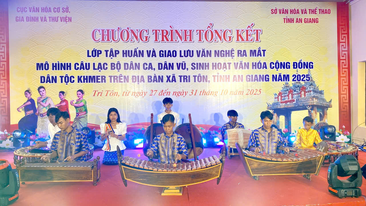 Ngày 31/10/2025, Cục Văn hóa Cơ sở, Gia đình và Thư viện (Bộ Văn hóa, Thể thao và Du lịch) phối hợp với Sở Văn hóa và Thể thao tỉnh An Giang tổ chức tổng kết lớp tập huấn và giao lưu văn nghệ, ra mắt mô hình Câu lạc bộ dân ca, dân vũ sinh hoạt văn hóa cộng đồng dân tộc Khmer trên địa bàn xã Tri Tôn.