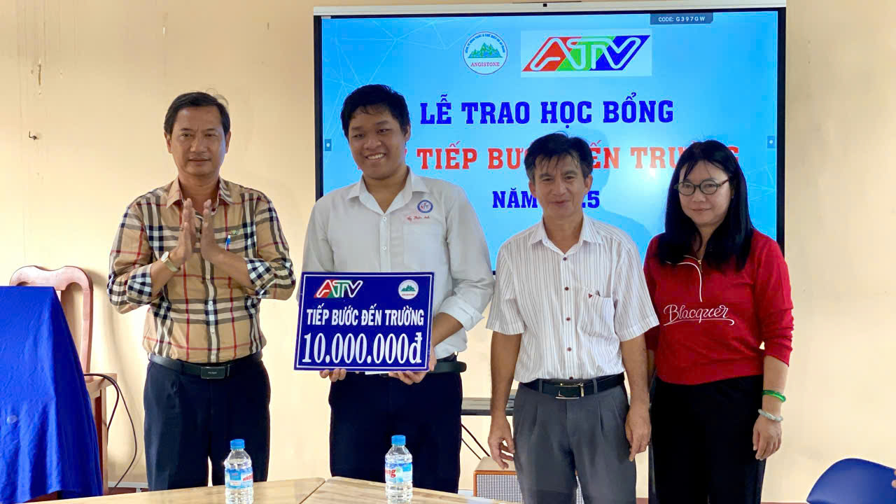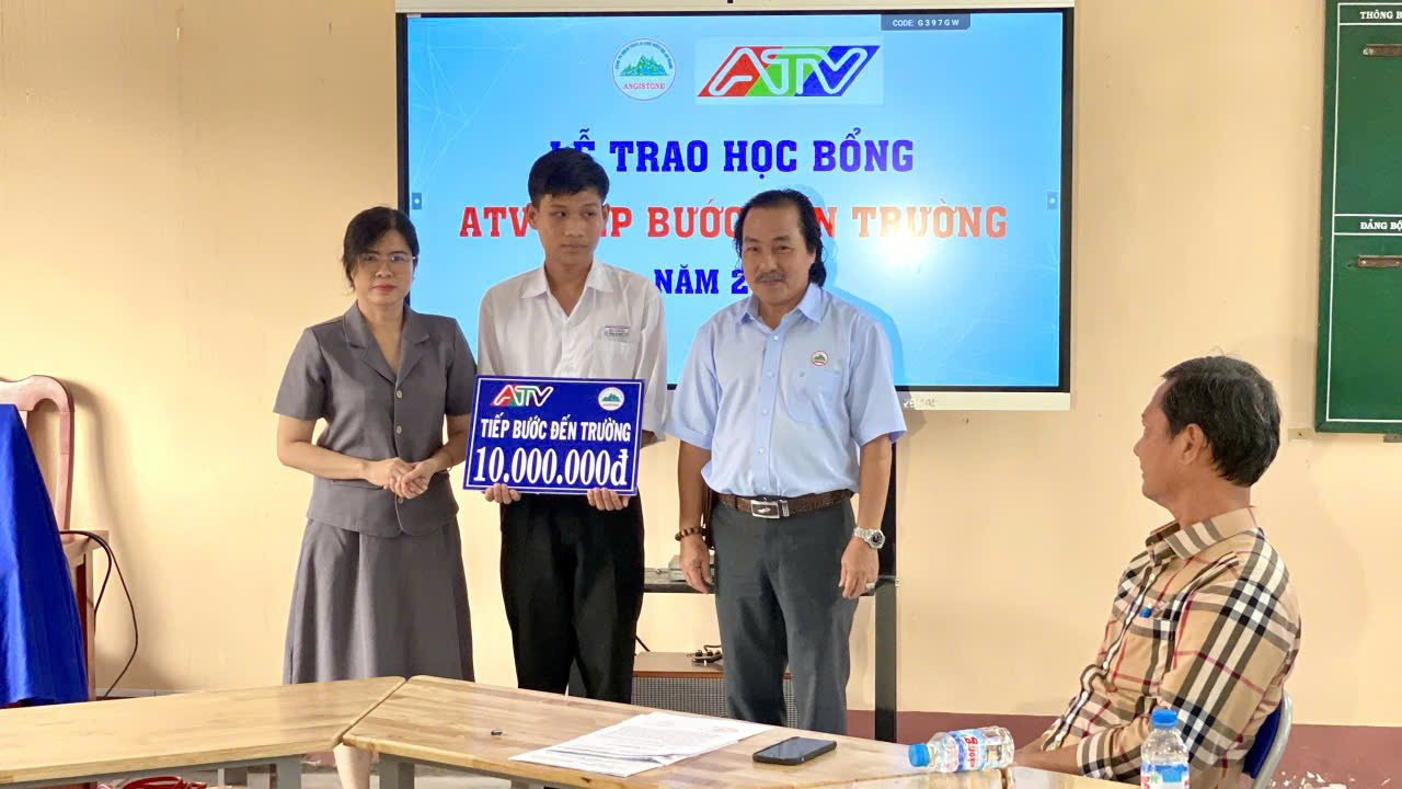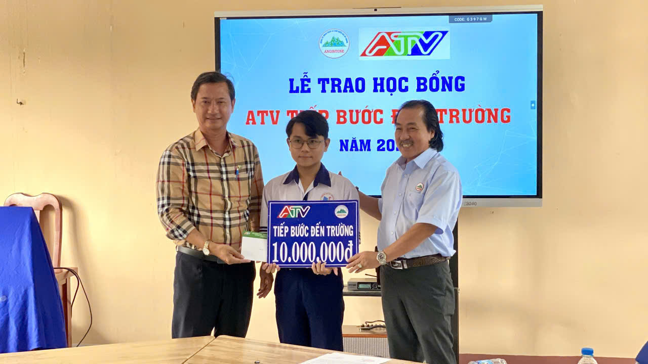 Tại buổi lễ, Ban tổ chức đã trao 3 suất học bổng “ATV tiếp bước đến trường” cho các em: Nguyễn Phước Anh lớp 12A2, Trường THPT Nguyễn Trung Trực 2; Lê Vĩnh Khang lớp 12A9, Trường THPT Ba Chúc và Nguyễn Minh Hiếu, lớp 12A5, Trường THCS – THPT Cô Tô.