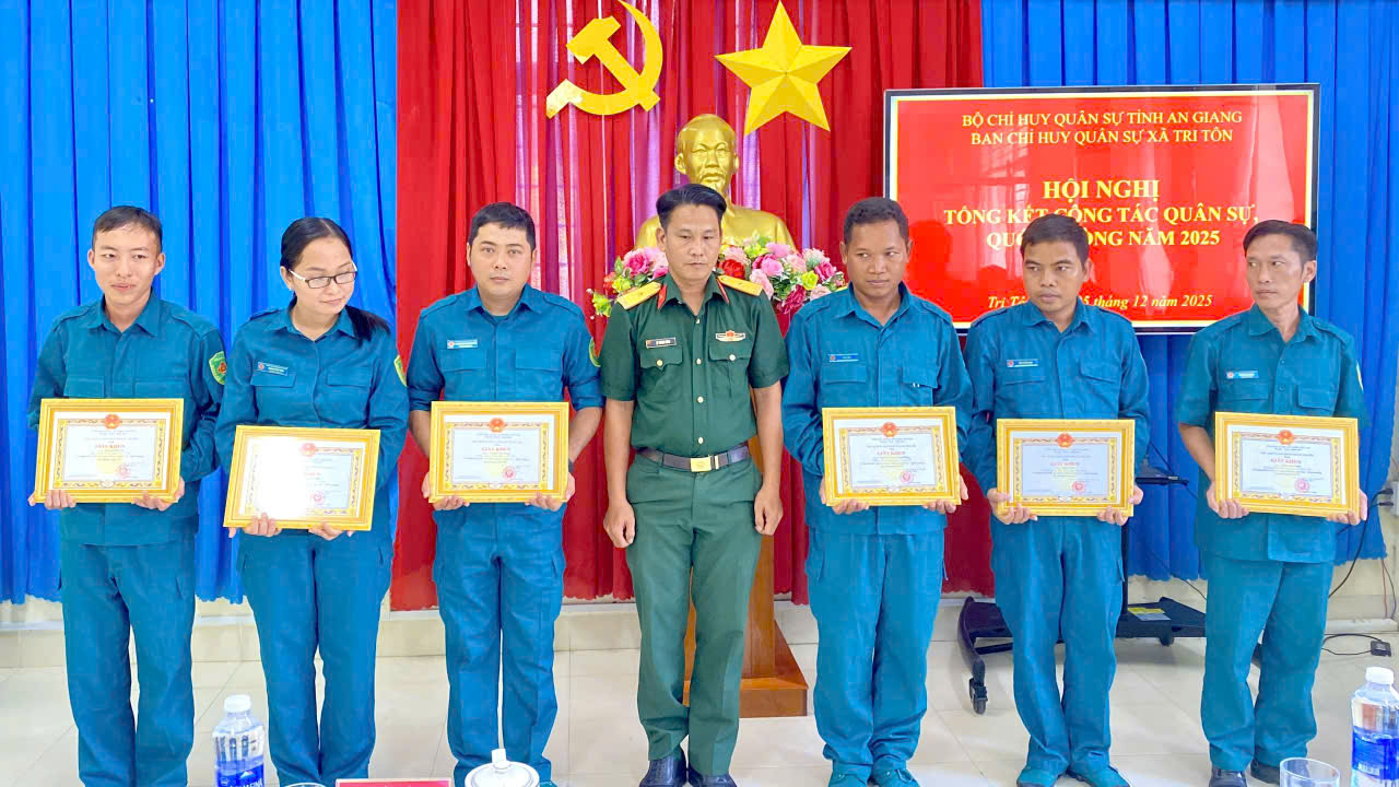 Năm 2025, Ban Chỉ huy Quân sự xã Tri Tôn đã quán triệt, triển khai nghiêm túc các văn bản chỉ đạo của cấp trên về nhiệm vụ quân sự, quốc phòng; thực hiện tốt công tác tham mưu và duy trì chế độ trực sẵn sàng chiến đấu, xử lý kịp thời các tình huống, không để bị động, bất ngờ.